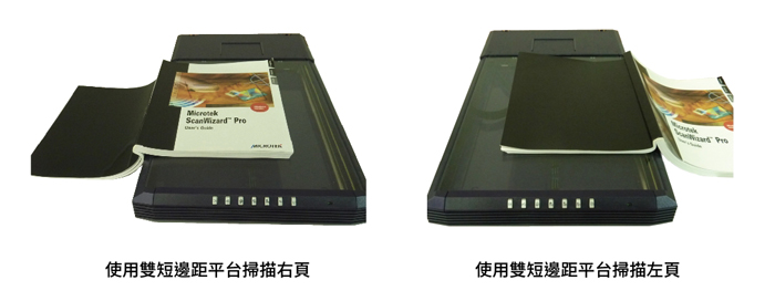本機特別設計之雙短邊距掃描平台,在書籍、雜誌連續掃描時,不必翻轉書籍、雜誌,只需左右移動,即可掃描左右兩頁,不但節省作業時間,更增加操作的方便性。